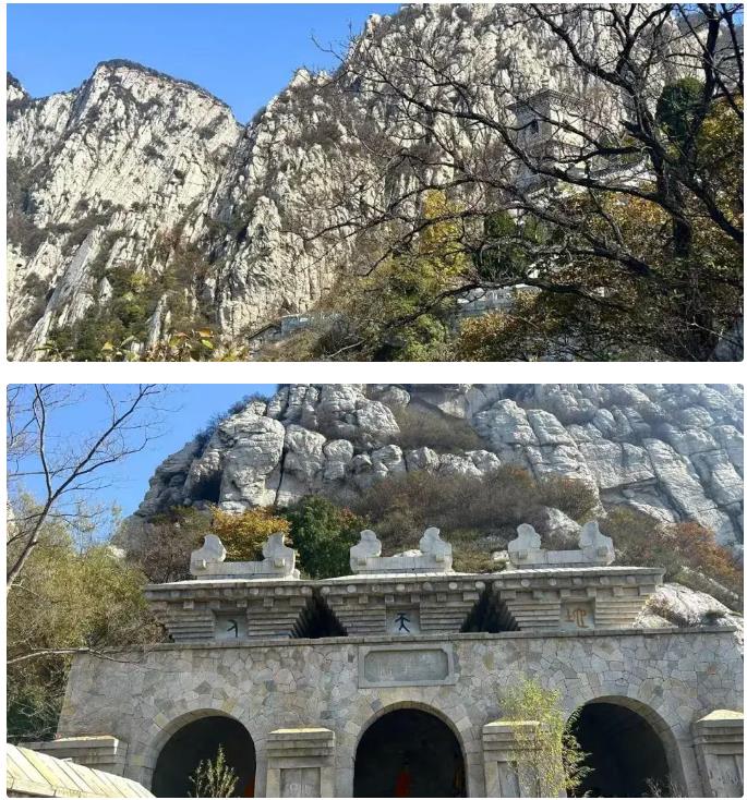 此路段就是以欣賞美景為主啦,這里是嵩山最精華的部分——書冊崖,一片片高達700-800米的白色巖石筆直聳立,像一本本書冊,在天地間佇立了18億年。從書冊崖到少林索道大概有15分鐘路程,如果不想坐索道下山,可以選擇沿著梯子溝方向下山,再到碑林,這一段路程大約需要2個小時。