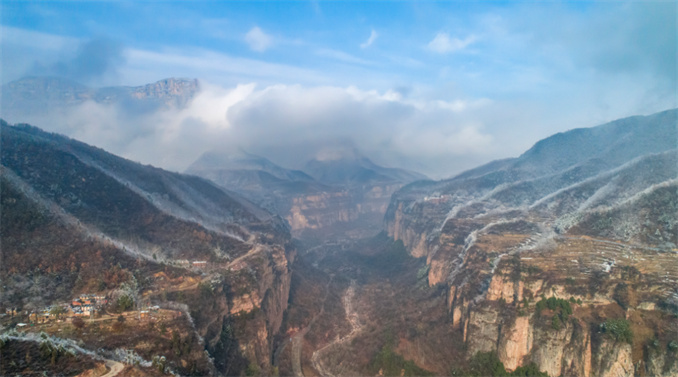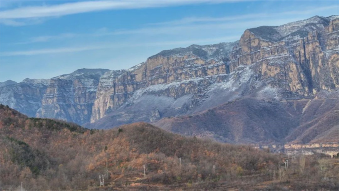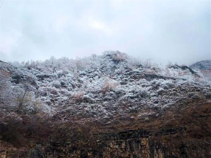 2024 年 11 月 25 日清晨,太行大峽谷在昨夜的細(xì)雨之后,迎來了入冬的第一場雪。雪輕輕地飄落,在太行山頂上鋪上了一層薄薄的白色,雖然雪量不大,卻也足以宣告冬天的正式到來。