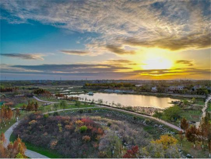 初冬時(shí)節(jié),河南省南陽(yáng)市鎮(zhèn)平縣趙河公園內(nèi)色彩斑斕,風(fēng)光旖旎。落日余暉灑在公園內(nèi),暈染出如詩(shī)如畫的美麗畫卷。繽紛的晚霞與多彩的趙河公園交相輝映,美輪美奐,別具一格。