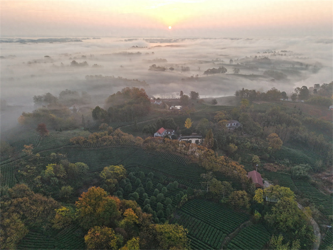 隨著初冬的腳步悄然而至,南灣湖仿佛披上了一層神秘的紗幔,云霧繚繞間,信陽毛尖的核心產(chǎn)區(qū)——浉河港,悄然變幻成了一幅流動的五彩畫卷。