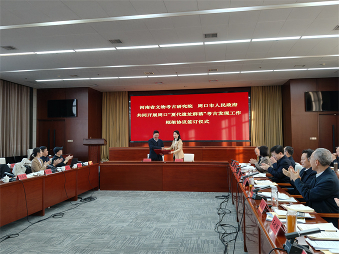 會議期間,河南省文物考古研究院與周口市人民政府簽訂“夏代遺址群落”發(fā)現(xiàn)保護合作初步框架協(xié)議書。
