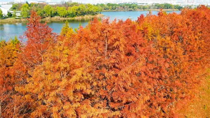 隨著氣溫逐漸降低,東西湖風(fēng)景區(qū)的落羽杉林迎來了最佳觀賞期。這些高大的樹木在冬季換上了絢爛的紅裝,仿佛是大自然精心布置的一幅幅油畫,燦若云霞,美不勝收。陽光透過云層,灑在落羽杉的枝頭,紅葉在微風(fēng)中輕輕搖曳,閃爍著迷人的光澤。