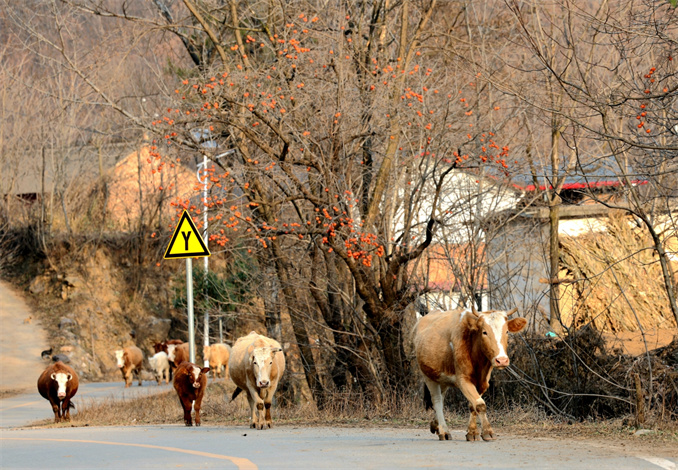 黃昏時(shí)分,太陽(yáng)漸漸西沉,天邊被染成了一片火紅,崤山在夕陽(yáng)的映照下,顯得更加壯麗。下山途中,一群牛兒在回歸。此時(shí)風(fēng)漸漸小了,遠(yuǎn)處葉片的轉(zhuǎn)動(dòng)也慢了下來(lái),它們像是在享受這一天中最后的寧?kù)o時(shí)光。