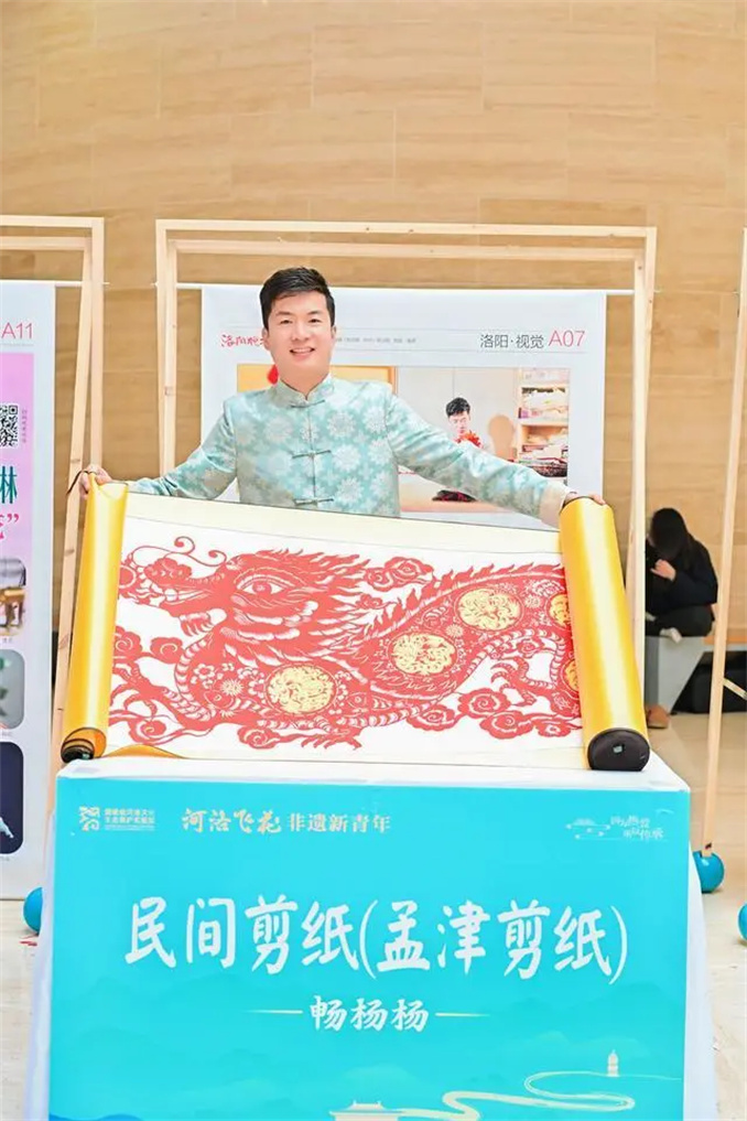 一把剪刀、一張紅紙就能講述非遺故事。在定鼎門遺址博物館二樓展廳中,“河洛飛花”2024國家級(jí)河洛文化生態(tài)保護(hù)實(shí)驗(yàn)區(qū)建設(shè)成果展整齊陳列,從九曲黃河文明之源開始,到非遺文化與現(xiàn)代生活的完美融合,細(xì)述洛陽“成果”。