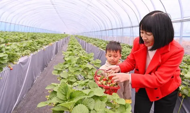 草莓香,生活甜。據(jù)莊園負責人楊仕鳳介紹,2017年她開始在村里承包土地種植草莓,現(xiàn)在基地面積已經(jīng)擴大到100余畝,每年草莓采摘收益可達50余萬元。除了發(fā)展傳統(tǒng)的草莓采摘,羅成寨草莓莊園積極探索草莓采摘產(chǎn)業(yè)發(fā)展新路徑,與新縣職業(yè)高級中學聯(lián)合打造“草莓種植+教育基地”的新發(fā)展模式,讓更多青少年在實踐過程中,了解農(nóng)業(yè)知識,傳承農(nóng)業(yè)文化,培養(yǎng)他們對土地的熱愛。楊仕鳳作為鄉(xiāng)里的鄉(xiāng)村振興“領頭雁”,自己致富增收的同時,還培育銷售草莓苗,帶動周邊群眾一起發(fā)展草莓種植業(yè),70余名群眾實現(xiàn)就近就業(yè),努力讓鄉(xiāng)親們過上更好的生活。