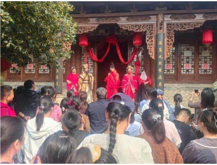 在白天的時光里,袁橋古村將帶你領(lǐng)略一場場精彩的民俗文化表演。你可以看到傳統(tǒng)的鼓舞、擔花籃,感受那份喜慶與熱鬧;可以欣賞到精彩的情景劇“員外招婿”,體會那份韻味與傳承。每一場表演都是對中華文化的深情致敬,讓你仿佛穿越回古代,親身體驗?zāi)欠菁儤闩c美好。