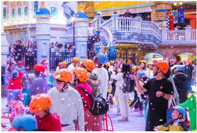 “入冬以來,我們結(jié)合冰雪世界燈光秀、冰湖廣場冬季展以及人偶表演等,持續(xù)舉辦浪漫飄雪節(jié)主題活動。以冰雪為主題,設(shè)計的北極熊、火狐等主題酒店客房1300多間,每個周末都爆滿,且游客80%來自省外。”鄭州銀基國際旅游度假區(qū)品牌負責(zé)人程芳芳介紹。