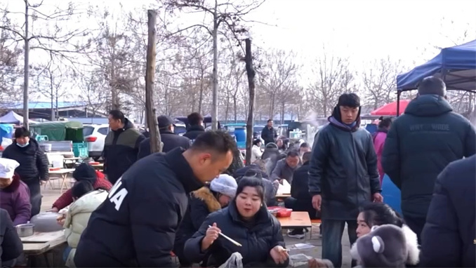 其中大集上的特色美食是讓人慕名而來的“頭牌”:洧川豆腐,傳統(tǒng)石磨工藝,老漿水發(fā)酵點制,可以用秤鉤穿、麻繩提;麻醬燴面,羊湯打底,加入芝麻醬,味道濃郁;還有胡辣湯水煎包組合、炒涼粉、鍋盔和牛肉,味道獨具地方風(fēng)味。