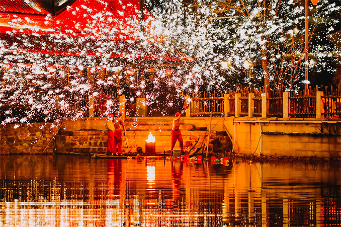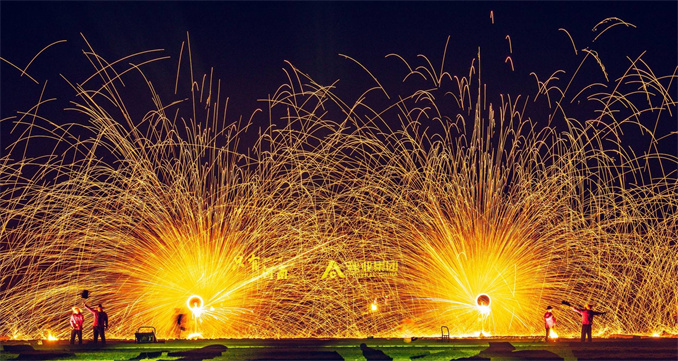 “為了讓游客朋友能更清楚的看到打鐵花表演,我們今年的打鐵花點位增加至40個,經(jīng)過調(diào)整后的打鐵花布局將更高、更大、也更有層次。”該景區(qū)有關(guān)工作人員表示,為了大家的跨年夜更加舒適難忘,觀看打鐵花表演時,推薦游客穿好御寒衣物,這樣就能在“火樹銀花星光灑”的零點度過一個溫暖浪漫的夜晚。
