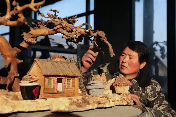 寒冬時節(jié),北風(fēng)呼嘯。盧氏縣官道口鎮(zhèn)將軍山村的一家鄉(xiāng)土藝術(shù)品小店里,卻是暖意融融。