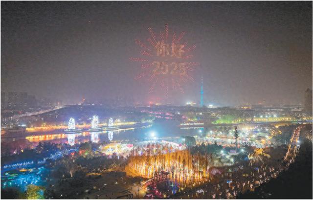 1月1日晚,市區(qū)紅楓廣場,伴隨著動感音樂,上千架無人機準時升空,為市民獻上一場流光溢彩的視覺盛宴。這樣的視覺盛宴,在漯河已上演80多場。
