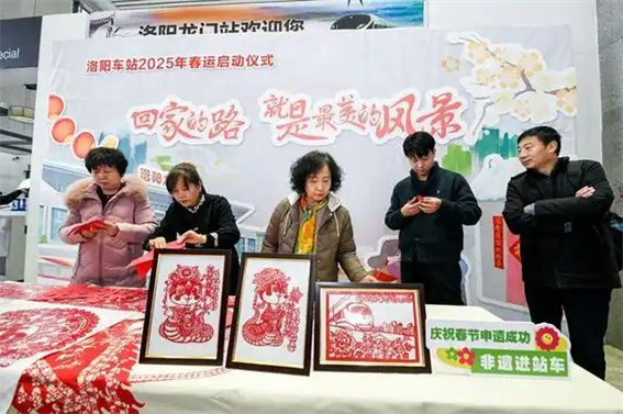 在洛陽龍門站的候車室里,旅客們不僅可以欣賞精美的剪紙作品,還可以在剪紙藝術(shù)家的指導(dǎo)下,體驗(yàn)剪紙藝術(shù)的樂趣,把親手制作的剪紙作品帶回家,把新年的美好祝愿帶回家。