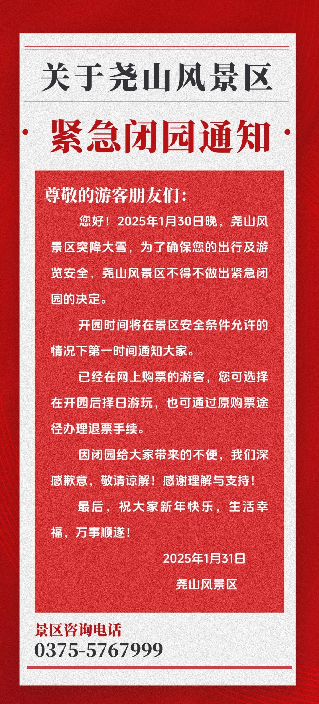 您的當(dāng)前位置:網(wǎng)站首頁 > 出行資訊 > >堯山風(fēng)景區(qū)緊急閉園通知
