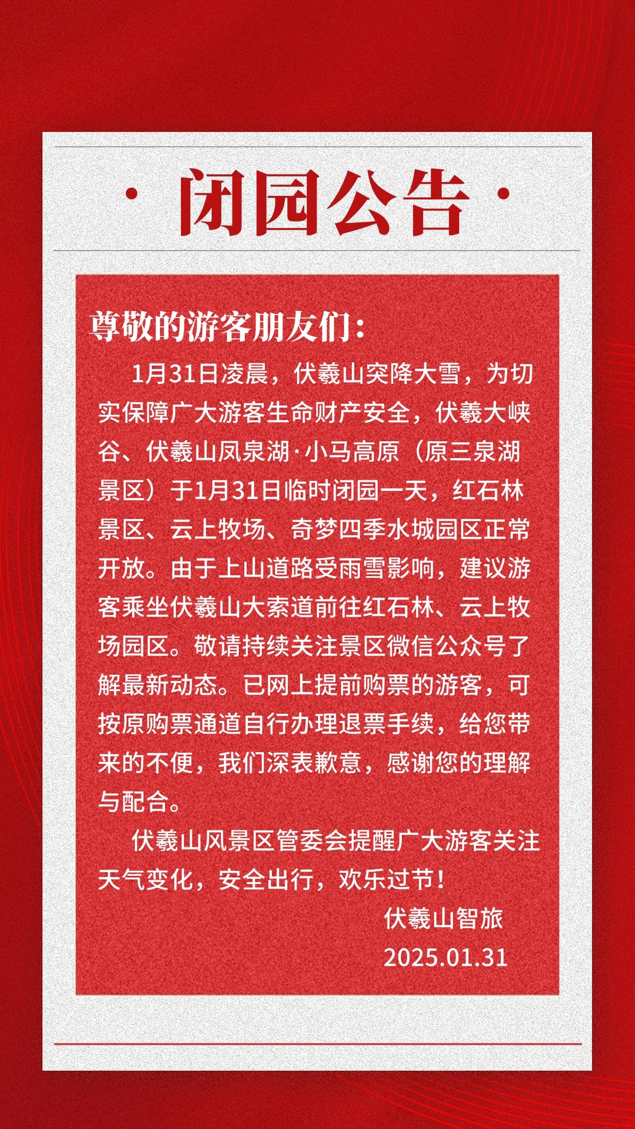 伏羲山景區(qū)部分園區(qū)閉園公告