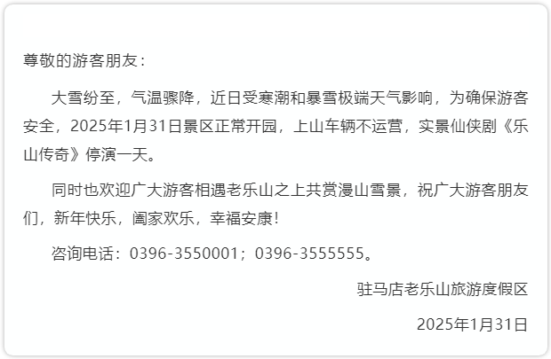 老樂山風(fēng)景區(qū)實景仙俠劇《樂山傳奇》今日停演一天