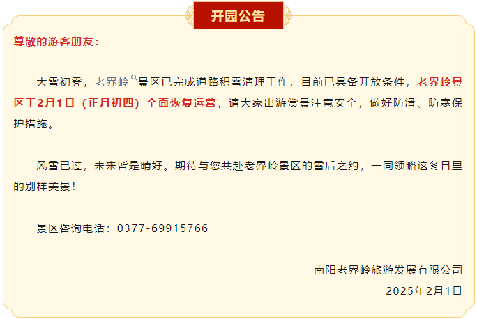 老界嶺景區(qū)開園公告