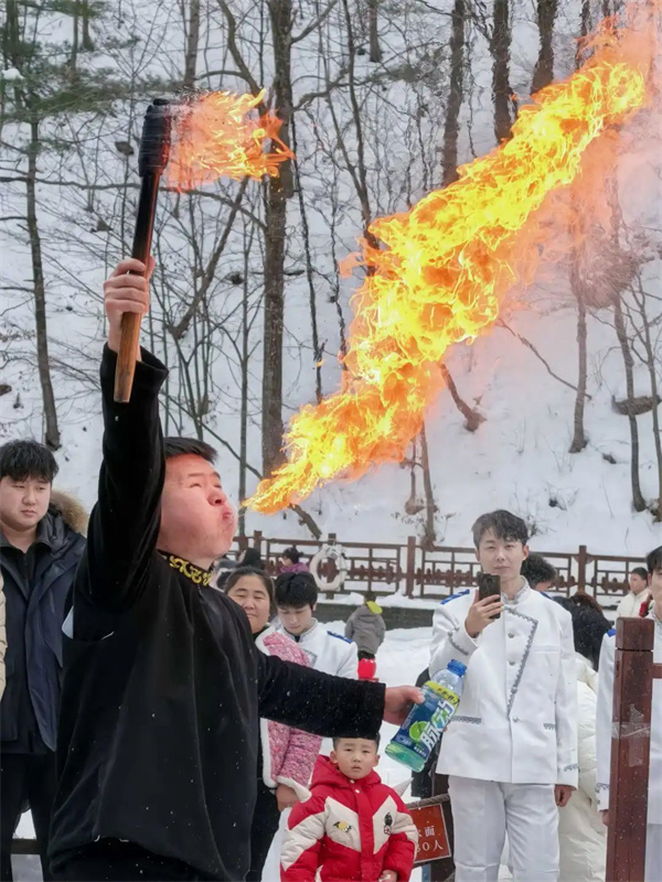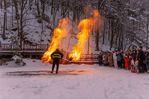 白云湖嬉雪處每日兩場(chǎng)火技表演