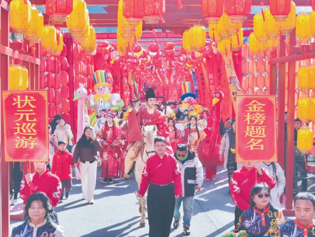 燈籠長廊、非遺市集、多彩活動,云臺山景區(qū)內年味十足。