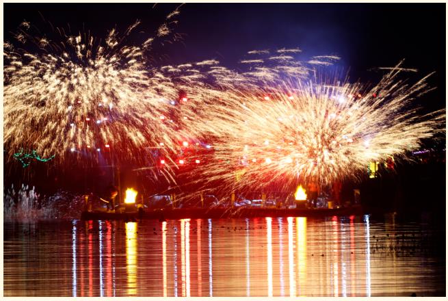 民間藝人在鄢陵縣國風燈火嘉年上表演打鐵花 記者 牛書培 攝
