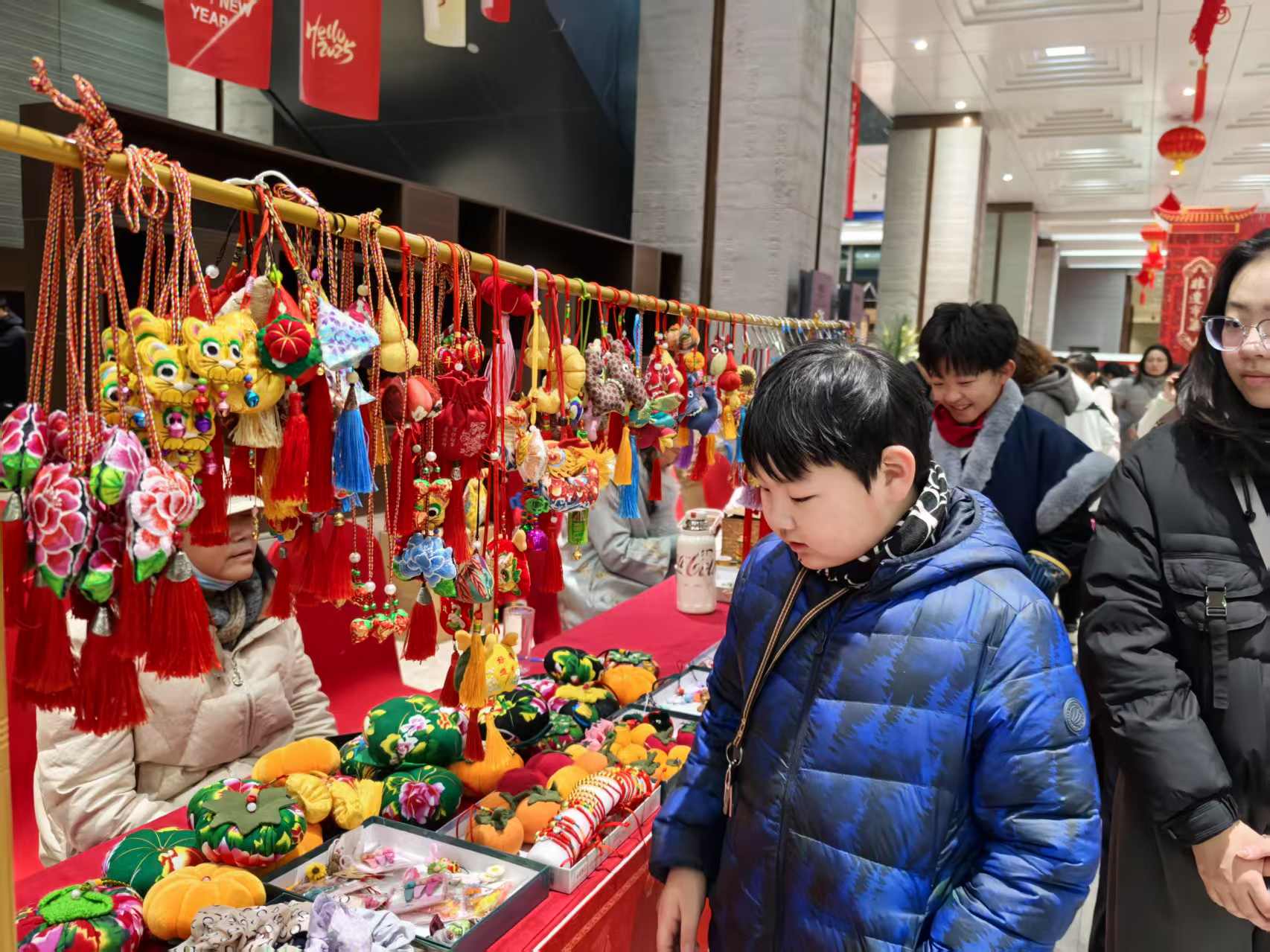 博物館一樓大廳的非遺集市上,同樣人頭攢動(dòng)。萌趣十足的布老虎、手工制作的香包、栩栩如生的泥猴、非遺木桿秤等,令人目不暇接。鄭州市民齊鳴駐足于艾草香包攤位,選擇了一款金魚造型,“送給家里兩歲的女兒。也寓意年年有余,歲歲豐登。”齊鳴說。