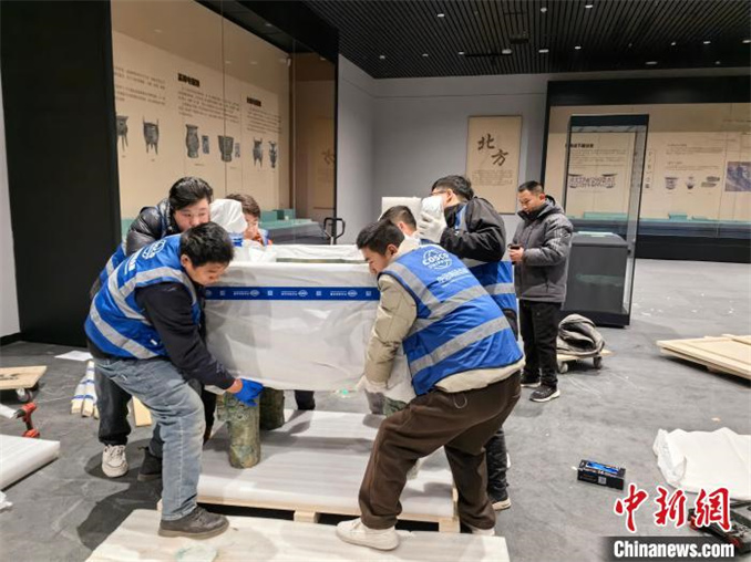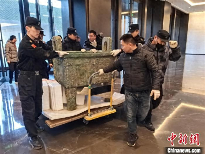 圖為借展展品“司母戊鼎”(仿制品)在進(jìn)行點(diǎn)交。孫玥 攝