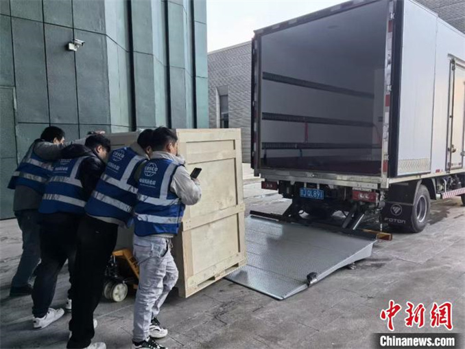 圖為打包完畢的展品準(zhǔn)備裝車運(yùn)輸。孫玥 攝