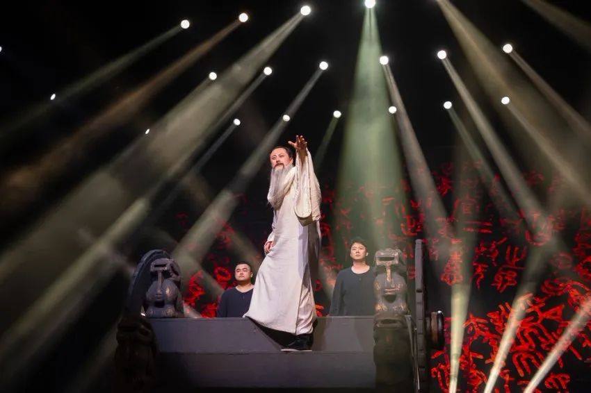 全劇以一架象征“周游列國”的移動戰(zhàn)車為主線,任毅介紹,這部作要分青年、中年、老年三個階段來展現(xiàn)孔子的一生,戰(zhàn)車代表孔子一生都在奔波中傳播他的思想文化和意志,隨著戰(zhàn)車在舞臺上轉(zhuǎn)的過程,配合光影技術(shù),將諸侯會盟、杏壇講學(xué)等場景凝練為詩意符號。