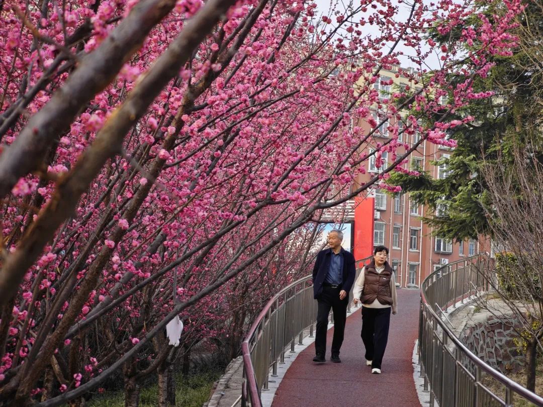 “紅梅花兒開,朵朵放光彩……”梅花不畏早春的微寒,是春日里開得比較早的花卉。除了紅梅外,市區(qū)還種植著美人梅、榆葉梅等。