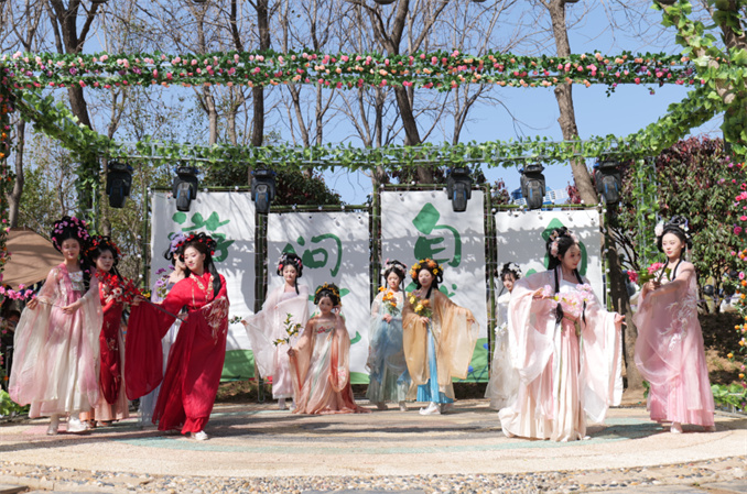 “這個(gè)叫麥李,這個(gè)叫珍珠繡線菊。”一叢叢開花的灌木旁,游客高女士一邊拍照,一邊帶著七歲的女兒認(rèn)識(shí)植物。高女士說,大好春光,帶著孩子出來游玩,既能舒暢身心,也是讓孩子更多地親近自然、認(rèn)識(shí)自然。“今天我不僅認(rèn)識(shí)了好幾種植物,剛才看了‘十二花神’的表演,我也知道了一年十二個(gè)月分別都開什么花。”高女士的女兒用稚嫩的聲音說道。
