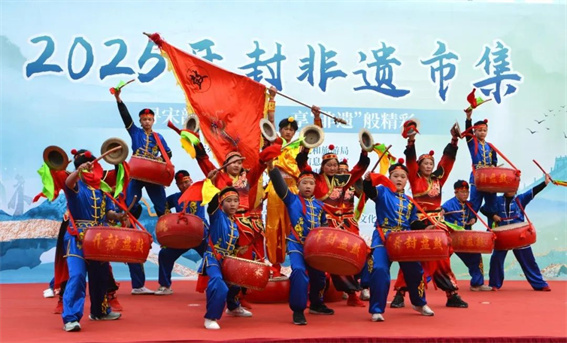 開(kāi)幕式上,展演活動(dòng)精彩紛呈。開(kāi)封盤(pán)鼓率先登場(chǎng),磅礴激昂的鼓點(diǎn)瞬間點(diǎn)燃現(xiàn)場(chǎng)氣氛。緊接著,撂石鎖、二夾弦、河南墜子、開(kāi)封鼓子曲、豫劇祥符調(diào)、漁鼓道情、嗩吶、子路八卦拳等非遺代表性項(xiàng)目依次亮相,精彩的表演展示了開(kāi)封非遺的深厚底蘊(yùn)與獨(dú)特魅力,F(xiàn)場(chǎng)觀眾熱情高漲,掌聲、歡呼聲接連不斷,不少人拿出手機(jī)、相機(jī),記錄下一個(gè)個(gè)精彩瞬間。“表演太震撼了!以前只是聽(tīng)說(shuō)過(guò),今天到現(xiàn)場(chǎng)一看,真是大開(kāi)眼界,讓人實(shí)實(shí)在在感受到開(kāi)封傳統(tǒng)文化的魅力。”市民劉女士激動(dòng)地說(shuō)。