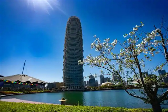 向陽而生,心如花木。鄭州的地標(biāo)“大玉米”周圍,花開正盛。