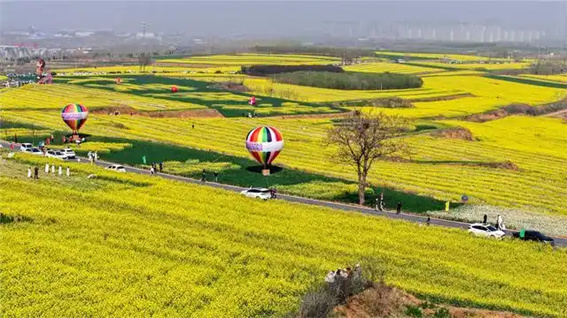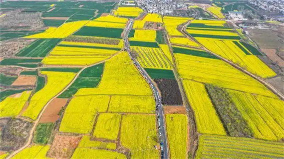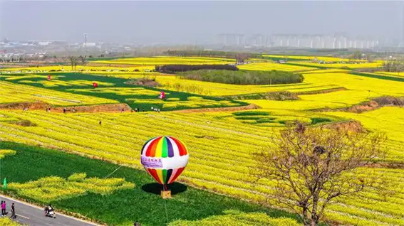 3月26日,洛陽市伊濱區(qū)諸葛鎮(zhèn)劉溝社區(qū)油菜花盛開,吸引眾多游客前來踏青游玩。