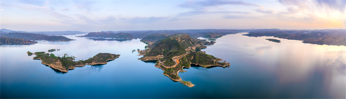 遠(yuǎn)處,層巒疊嶂的黛青色山影綿延至天際,與天穹相接處泛起朦朧的煙靄,仿佛水墨畫(huà)中暈染的留白。腳下的小浪底庫(kù)區(qū)河面開(kāi)闊,水流沉靜,宛如一匹緩緩鋪展的綢緞,又似一塊未經(jīng)雕琢的藍(lán)寶石,靜臥于群山懷抱中,澄澈的水面倒映著流云與飛鳥(niǎo),沒(méi)有驚濤,沒(méi)有轟鳴,只有陽(yáng)光在水面撒下細(xì)碎的金箔,隨著微波輕輕蕩漾,偶爾會(huì)有一葉小舟劃過(guò),在河面上劃開(kāi)一道細(xì)碎的銀痕,像是從《水經(jīng)注》里奔流至今的文明脈絡(luò)。