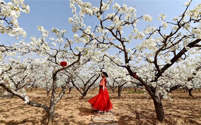 站在孟津梨核心區(qū)鐵爐村“孟津梨”主題公園制高點,遠遠望去,那一株株梨樹,像是從地下冒出來的一股股噴泉。而雪白的梨花,就像是源源不斷的浪花,在陽光的映照下,在春風的吹拂下,跳躍著、舞動著,潔白如雪,銀光閃閃。暢游在滿眼梨花的世界里,讓人感受到的是一種飄逸的享受,仿佛自己也化作一朵梨花,在春天里競相開放,在微風中展露身姿。