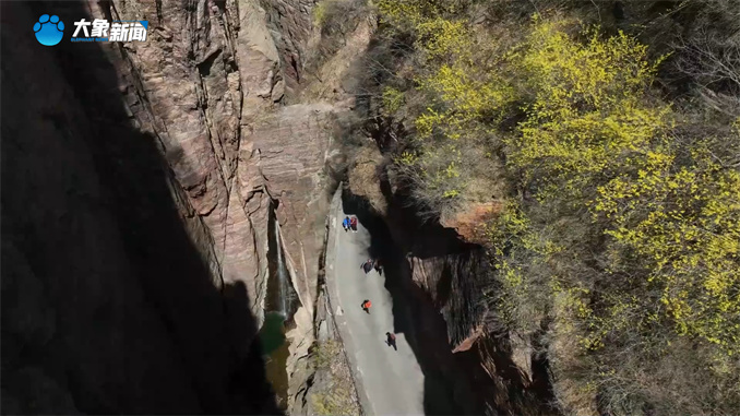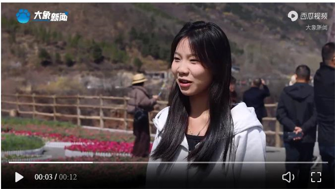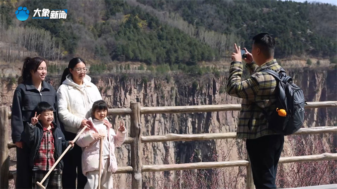 游客崔寶堤來自上海:“和南方完全不是一個風格,這邊更雄壯一點,太行山的花也開了,連翹、杏花和桃花都是野生的,今天天氣也特別好,心情很好。”
