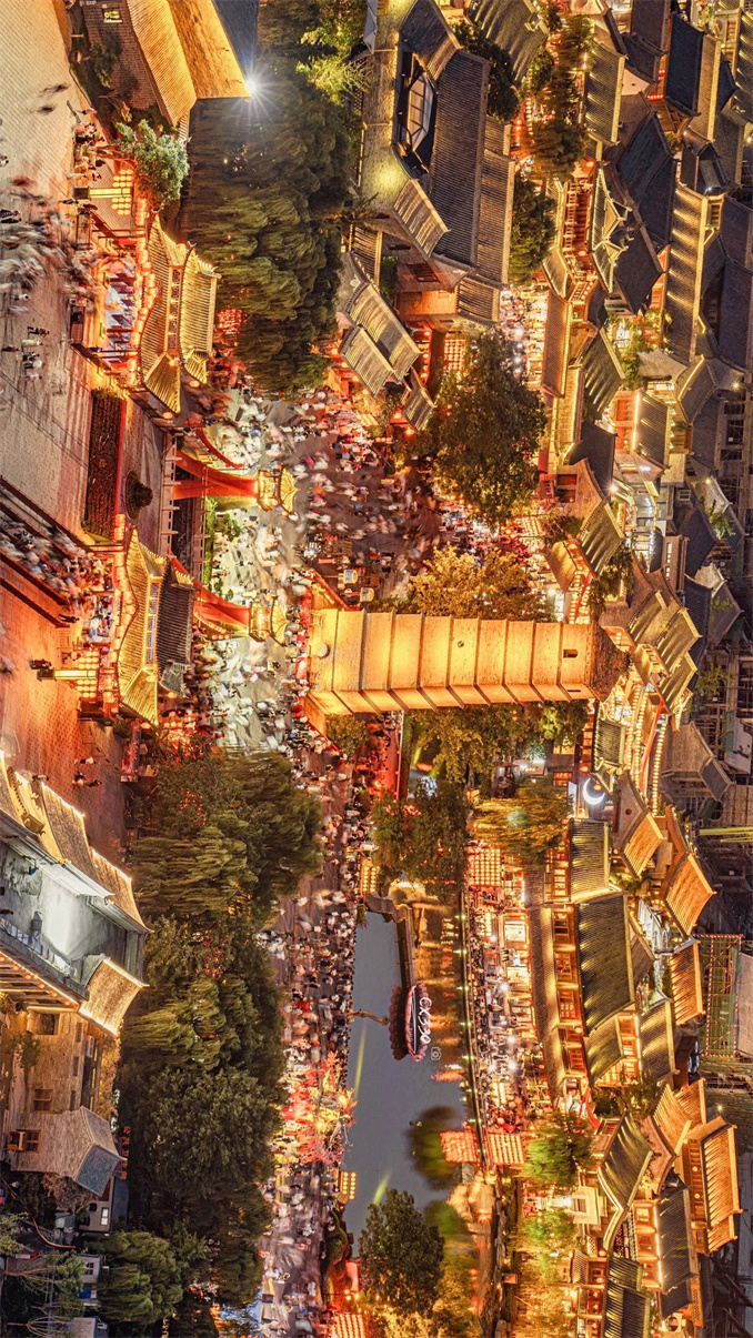 華燈初上,洛邑古城涌入上千名游客。在這里,唐代酒樓、宋代商鋪,交相輝映;小橋流水、青磚黛瓦,一步一景。裙裾飄飄、團(tuán)扇遮面的古裝佳人或倚窗凝思,或憑欄望月,置身其中,讓人不辨古今。“來一次洛陽、穿一次漢服”,成為無數(shù)人的浪漫之約。