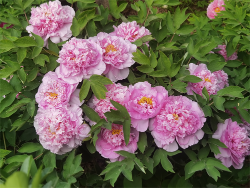 國際牡丹園:全園共有約50個(gè)品種牡丹開放,主要為盆花牡丹。分布在主干道東段南側(cè)和生產(chǎn)科技大溫室等處。其中:盛開的牡丹品種有芳紀(jì)、太陽、艷冠群芳、脂紅、金桂飄香、黃翠羽、白雪塔、洛陽紅、卷葉紅、雪映桃花、似荷蓮、珠光墨潤、玉面桃花、桃紅飛翠、霓虹幻彩、珊瑚臺(tái)、海黃、迎日紅、烏龍捧盛、十八號(hào)、景玉、花競、彩繪、二喬、藍(lán)月亮等;初開的牡丹品種有海黃、綠幕隱玉、香玉、黃冠、花王、島錦、旭港等。園內(nèi)荷包牡丹、垂絲海棠、貼梗海棠、晚櫻、碧桃、紫荊等競相綻放。