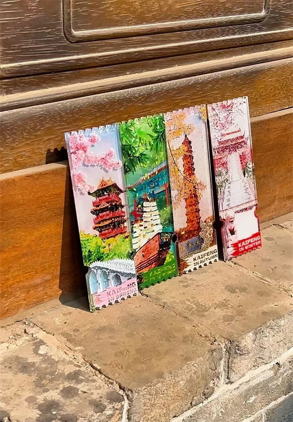 四季流沙冰箱貼將清明上河園的春季、萬歲山武俠城的夏季、鐵塔的秋季和龍亭的冬季展現(xiàn)的淋漓盡致。流沙慢慢流過景色,真是“遠赴人間驚鴻宴,一睹大宋盛世顏”。