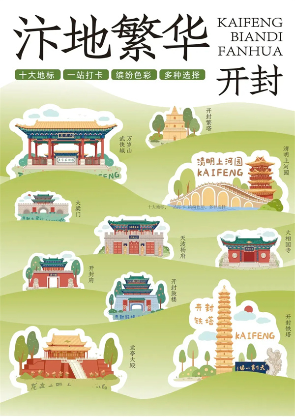 開封中的風(fēng)景,景色外的開封,無論是亮色還是素色繪制,都完美彰顯了開封特色。