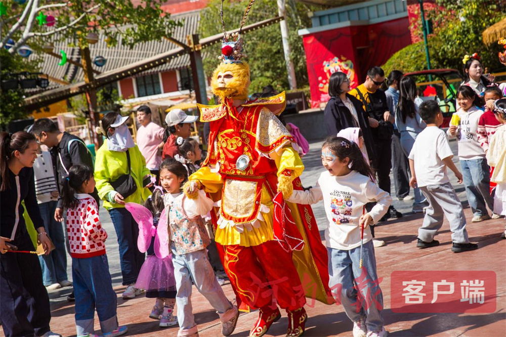 鄭州方特夢幻王國則圍繞“熊出沒”主題推出一系列親子互動活動,全方位為游客營造歡樂、溫馨的氛圍。在“狗熊嶺明星見面會”上,小朋友們爭相與喜愛的《熊出沒》角色擊掌擁抱;在“熊熊健身操”活動中,游客們在歡樂的氛圍里跟隨音樂舞動;“小丑嘉年華”表演則憑借詼諧演出和滑稽雜技,引得游客捧腹大笑。