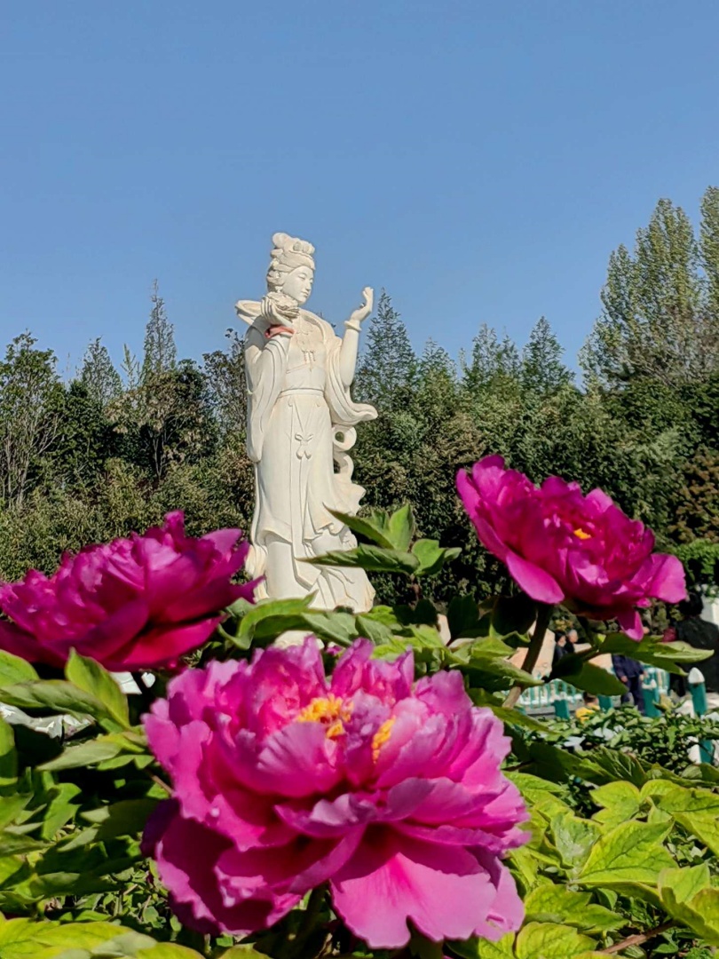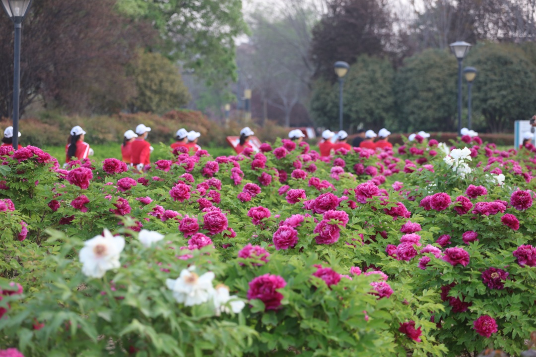 天香公園內(nèi)的牡丹正值盛放,吸引游人觀賞。