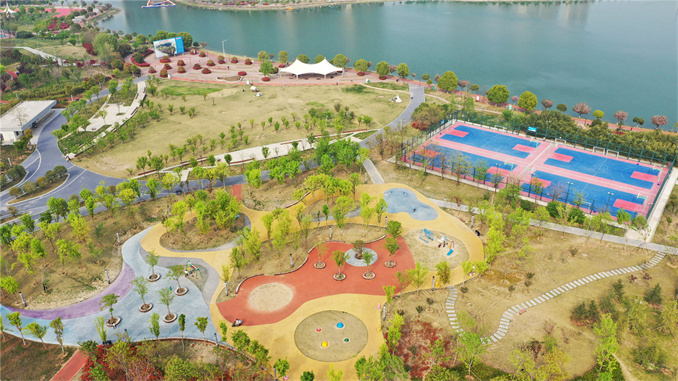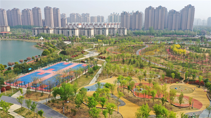 近年來(lái),許昌市不斷加大公園綠化美化亮化以及基礎(chǔ)設(shè)施修繕,提高公園休憩服務(wù)功能。如今,越來(lái)越多的市民已經(jīng)習(xí)慣在家門口的公園感受美好時(shí)光。圖為4月8日,許昌市鹿鳴湖公園景色(無(wú)人機(jī)照片)。
