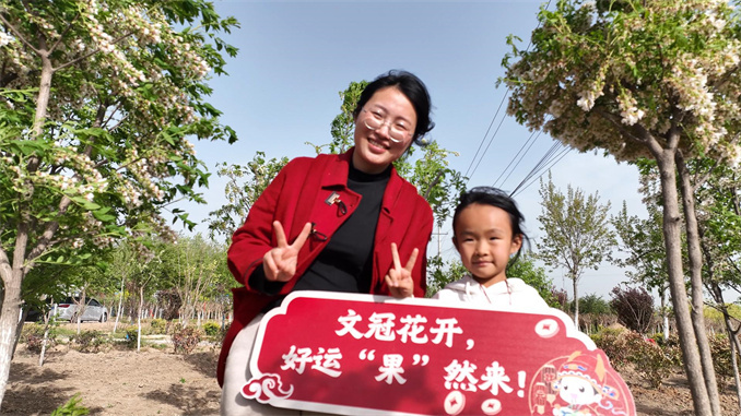 市民楊瀟瀟說:“文冠花看起來清新雅致,聽說還有‘學(xué)業(yè)有成’的寓意,特意帶孩子來沾沾喜氣。”