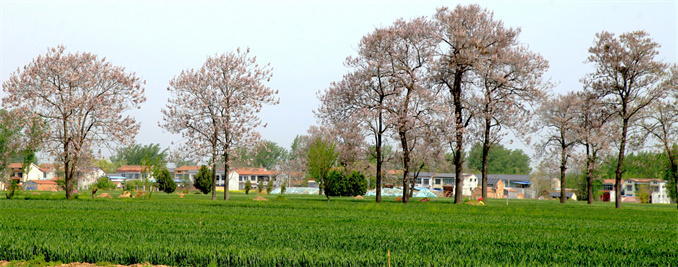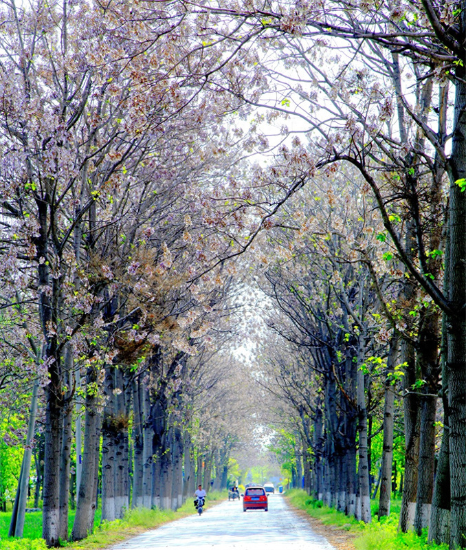 春色怡人,百花盛開,正是踏青賞春時,那夢幻般的泡桐花,也應時而來。在豫東寧陵縣村鎮(zhèn)、田野里、道路邊,一棵棵泡桐樹綻放紫花,空氣里透著芳香,為新農村披上了一層彩裳。