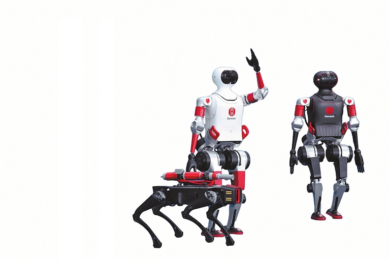 大會(huì)開(kāi)幕式上,兩臺(tái)機(jī)器人化身“武丁”“婦好”攜機(jī)器狗亮相。河南日?qǐng)?bào)記者 王錚 攝
