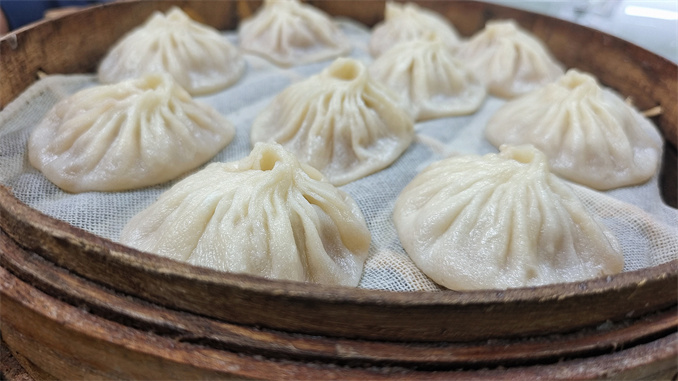 灌湯包“提起像燈籠,放下似菊花”,一定記得要“先開窗,后喝湯”,十八道褶的透明燈籠包,吸管插入的瞬間會(huì)飆汁預(yù)警!建議搭配陳醋+姜絲,體驗(yàn)“先爆破再吞噬”的獵奇快感!