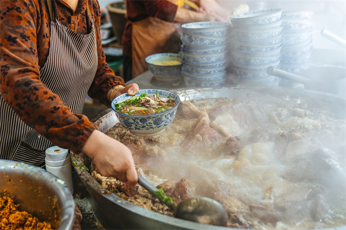清晨喚醒靈魂的“地獄級(jí)辣度”,牛肉粒在濃稠湯汁里翻滾,搭配炸至金黃的油饃頭,河南人用一碗湯詮釋了什么叫“早餐界的重口味天花板”!一口下去瞬間驅(qū)散困意,難怪網(wǎng)友調(diào)侃,“喝一口汗流浹背”。偷偷告訴你:加一勺醋,酸辣暴擊直接封神!