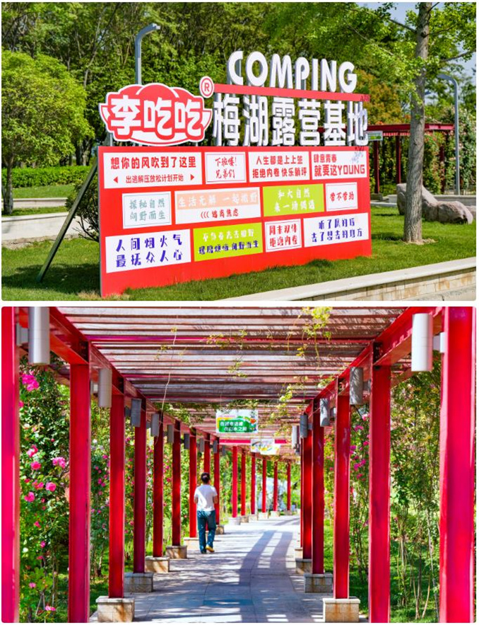 位于梅河公園的李吃吃梅湖露營基地設有15頂帳篷、天幕,碧綠的草坪搭配潔白的帳篷,假日“松弛感”拉滿。