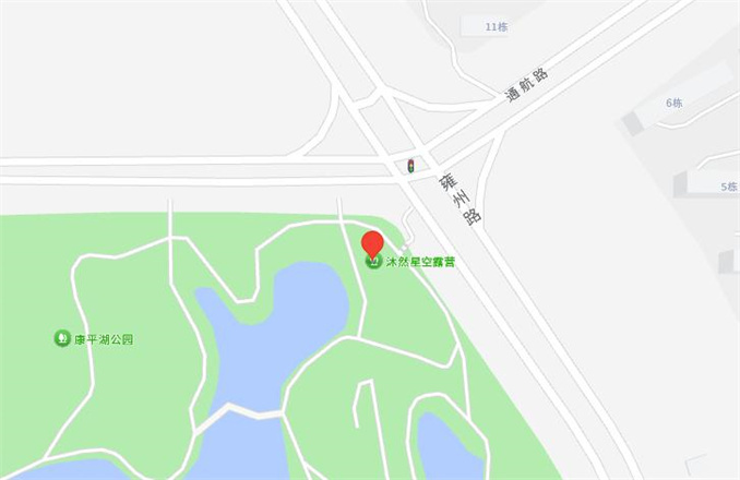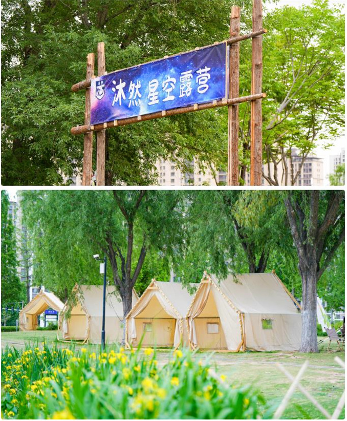 在康平湖公園的荷花池畔,有著一座獨具特色的帳篷露營基地——沐然星空露營基地。