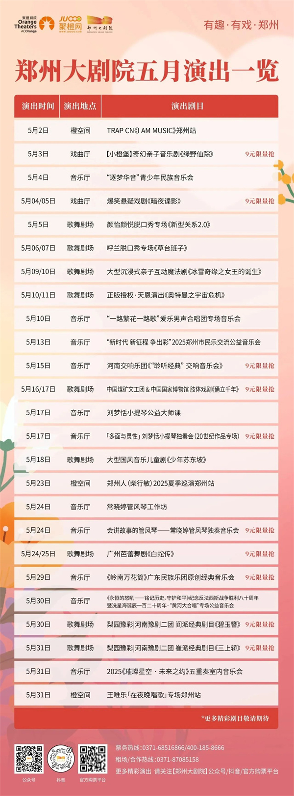 春末夏初,河南藝術中心的舞臺即將被五月的藝術熱浪點燃!從備受期待的潘美辰演唱會到小鹿脫口秀,從芭蕾舞劇《天鵝湖》到舞劇《天工開物》,多元的藝術形式在此碰撞交融。